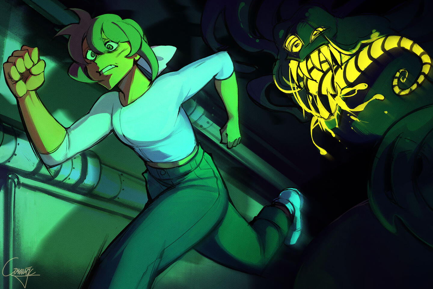 A first look into original concept work for my web comic series "Divinus". It follows, Mitsuko, an average college student who lives a double life, possessing a nanotech helmet to do her bosses bidding. This series is intended for a mature audience, comprising of action, crime drama with hints of thriller.Full Pitch:
